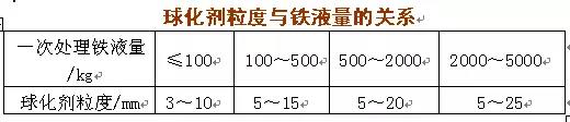 球化劑的粒度是影響反應(yīng)速度的一個(gè)重要因數(shù),需要經(jīng)過(guò)用戶允許。球化劑粒度大小主要與一次處理的鐵液量有關(guān)(見(jiàn)附表)。此外還與鐵液包形狀、球化劑覆蓋程度,以及鐵液溫度等諸多因素有關(guān)。一般而言,粒度過(guò)大易引起早爆和漂浮;粒度過(guò)小, 在鐵液溫度不足時(shí),極易結(jié)死包底。以上兩種情況,都影響球化劑收得率,影響球化的穩(wěn)定性。注意尺寸太小特別是粉狀球化劑在生產(chǎn)中是不能應(yīng)用的。一般情況下,超標(biāo)的球化劑量應(yīng)小于10%。